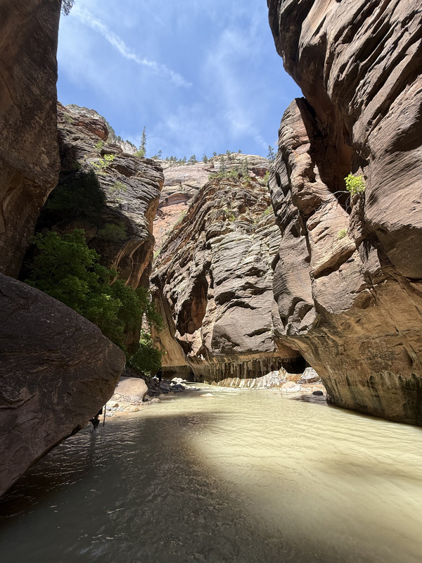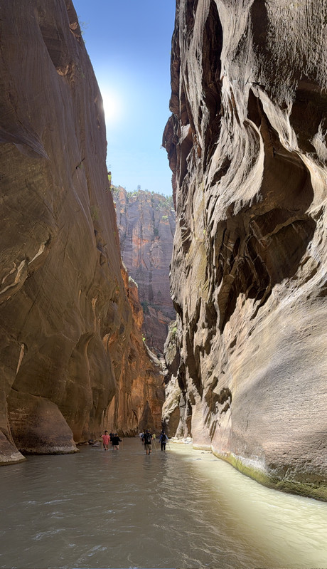 Narrows was my favorite, I ended up doing 10 miles that day. It's about 1.25 miles on sidewalk til you get into the river and about another ~3 miles to the really tight section of the Narrows. I went as far as you could on a bottom up to Big Springs. I recommend renting at least a stick, the river isn't kind to hiking poles, I brought my fly fishing shoes with neoprene socks and those were a heck of a lot better than the water boots you can rent. I was just flying past all the other tourists not use to river rock traversing because of my fly fishing experience and shoes made for that specific application.