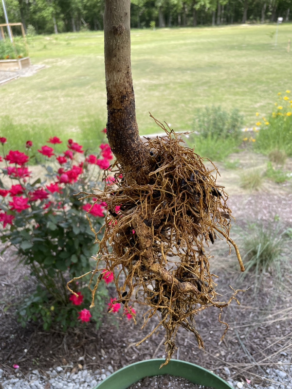 [/url] Wouldn’t ya know, this dang Meyer lemon has new growth. Noticed root stock shoots and lemon shoots yesterday. Clipped the rootstock shoots off and dug it up and put it in a container. This lemon has died back this far the last two years due to cold. It’s 3+ years old. I was expecting to see a much larger root system. Anyways, I’ll see it I can grow it out and prune to an acceptable form. Putting a loquat where this lemon was in-ground.