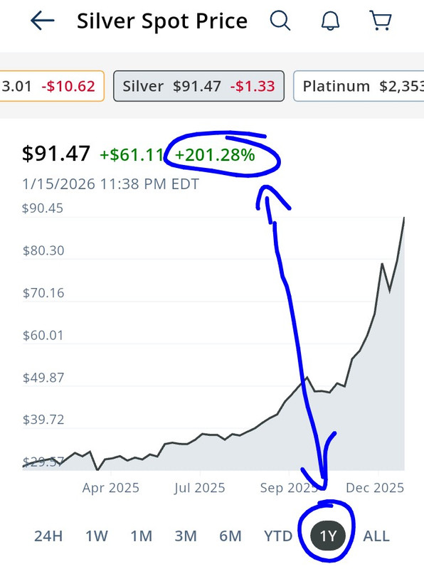 I don't know my exact spot price average, but it's in the teens still. Not a single ETF that I have in my Roth is up more percentage wise than my Silver since I started investing in the markets. Granted that wasn't always the case before this run-up, so I agree with you on the metals being able to suddenly gain massive ground. But, you said any time frame and Silver has been better for me at this point than all of my funds have.