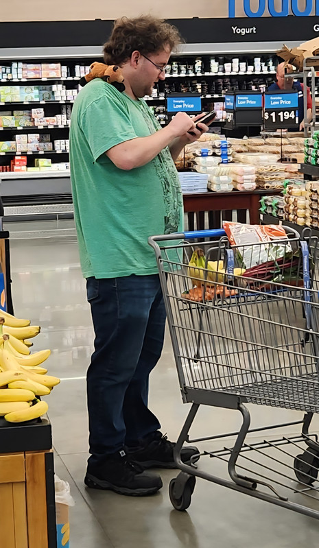 This guy was pushing his buggy around Walmarks yesterday having conversation with his shoulder buddy. My wife said it's probably for emotional support. I kept my eye on him just in case he went crazy while we were in there. What in tarnation!