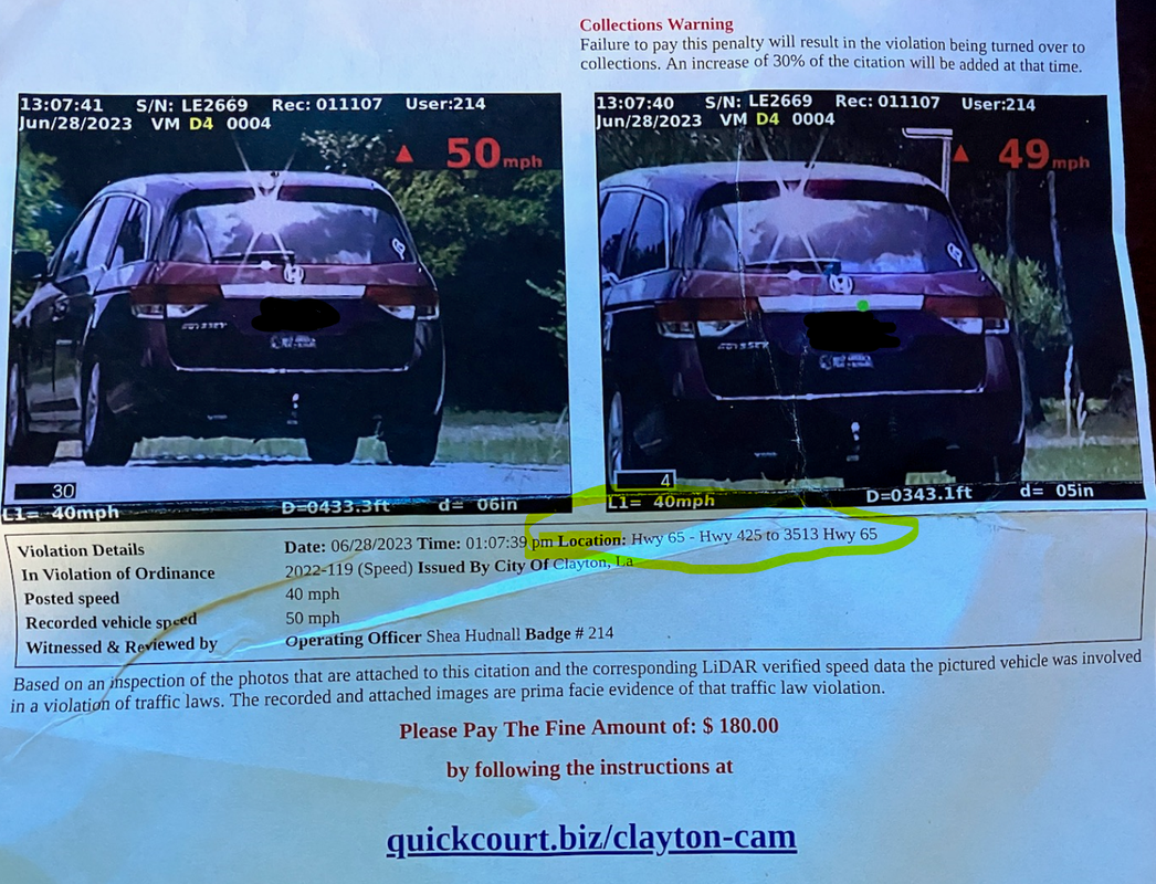 re: Camera Ticket Clayton,LA
