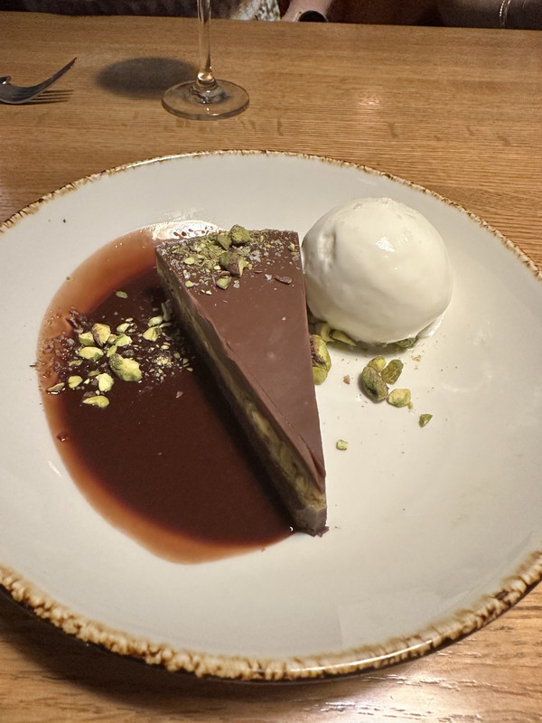 Dessert? Of course. We shared the torta caprese e pistachio and a saffron pavlova. The pavlova was...interesting. But if we had to do it again? We’d skip it and order three more of the torta caprese. It’s a must.