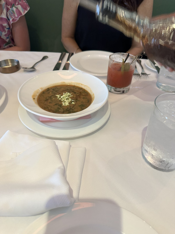 The spread? Bloody Bulls, turtle soup, gumbo, avocado toast, eggs Hussarde, a mushroom omelette, and steak and eggs. Turtle soup was disappointing. The avocado toast stole the show.